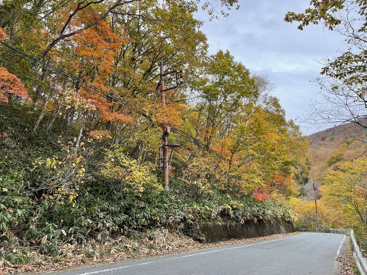 皆さんがバスやタクシーで尾瀬に向かう戸倉~鳩待峠間の紅葉が、現在、津奈木のゲート前後でたいへん見事です。この紅葉の見頃は、日に日に戸倉の方へ下っていきます。