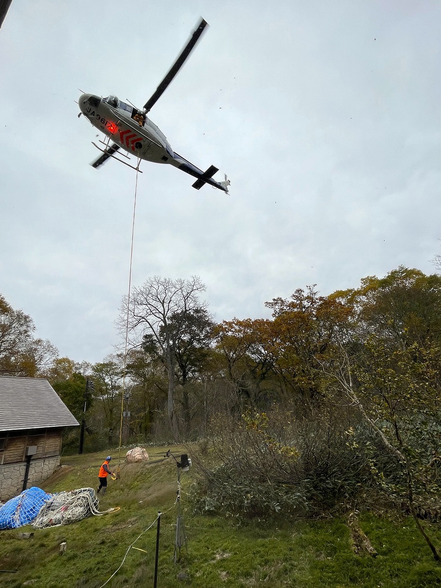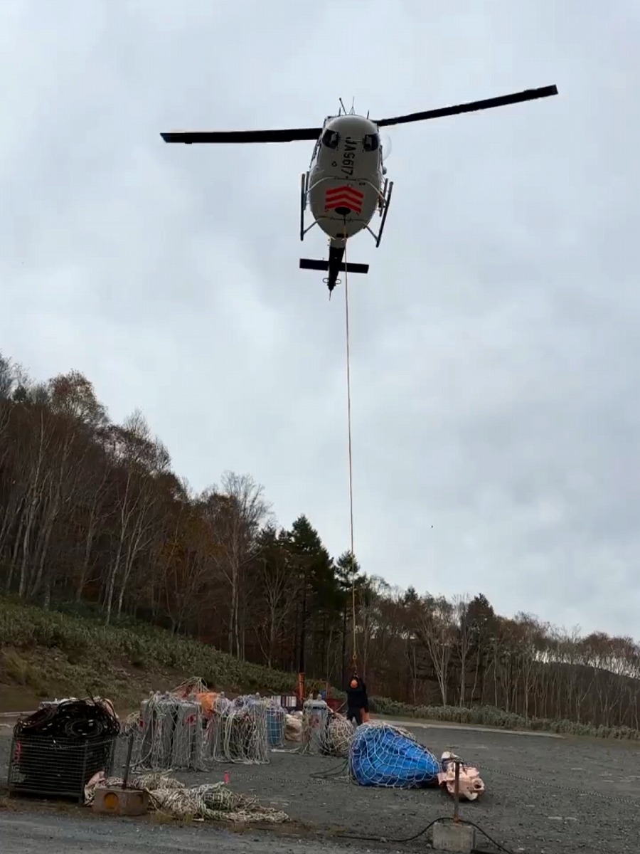 本日はシーズン終了に向けて、山ノ鼻の山小屋やビジターセンターの大きな荷物をヘリコプターで鳩待峠に運搬しました。これから雪に閉ざされる前の大切な作業です。