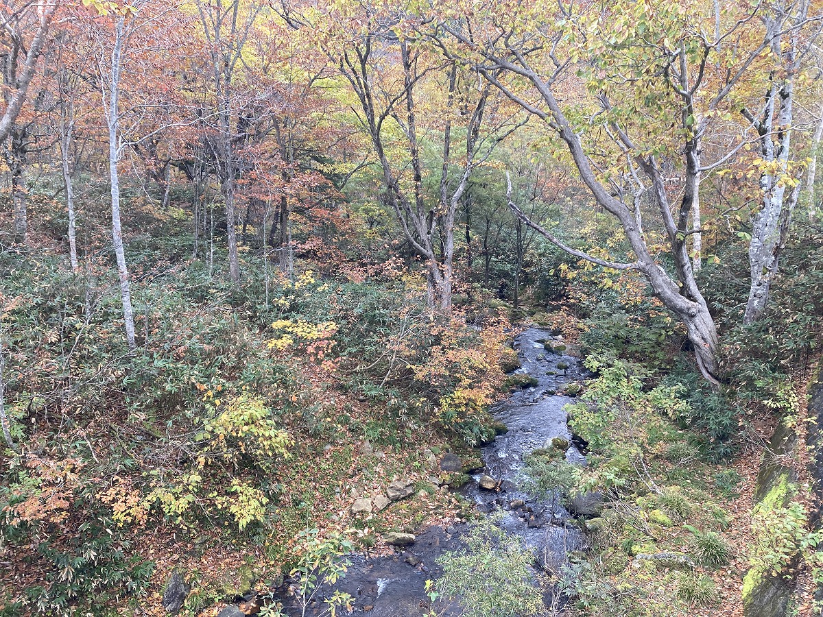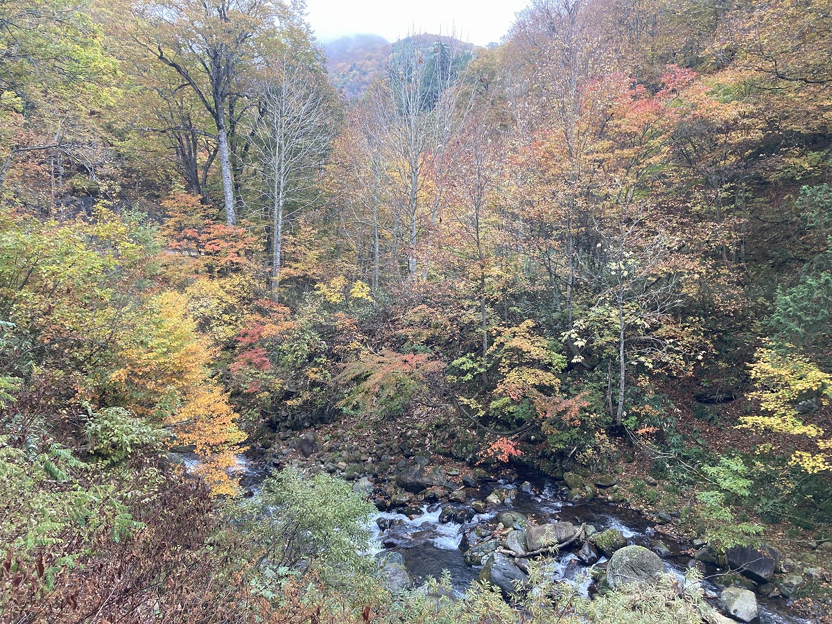 津奈木の分岐を過ぎ、鳩待峠方面に向かうと一段と色づきが鮮やかになり赤、黄、オレンジ、緑色のコントラストが本当に美しいです。穏やかな秋の風景に平和な時間を感じ、何だか暖かい気持ちになりました。