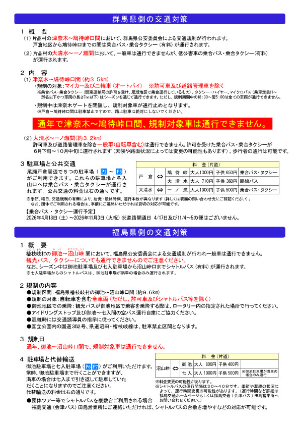 2026年尾瀬国立公園の交通対策のお知らせ