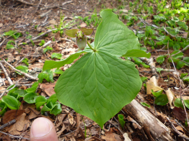 沼の畔には点々とエイレイソウ(延齢草)が咲いています。