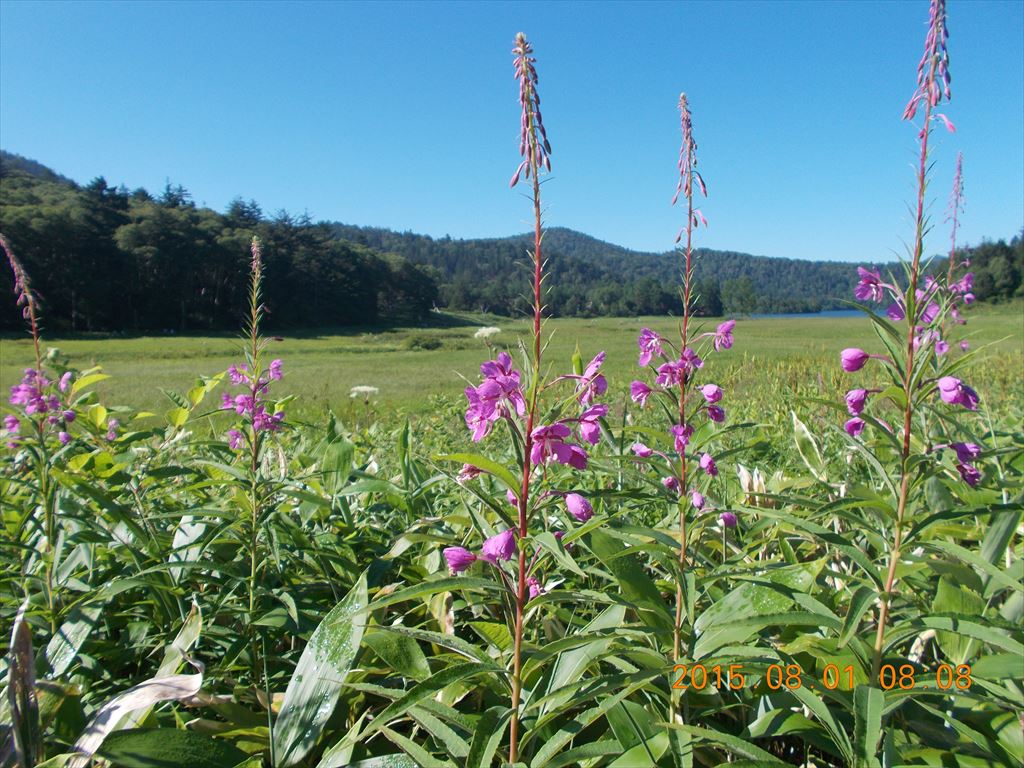 ヤナギランの丘のヤナギランも青空に映えています