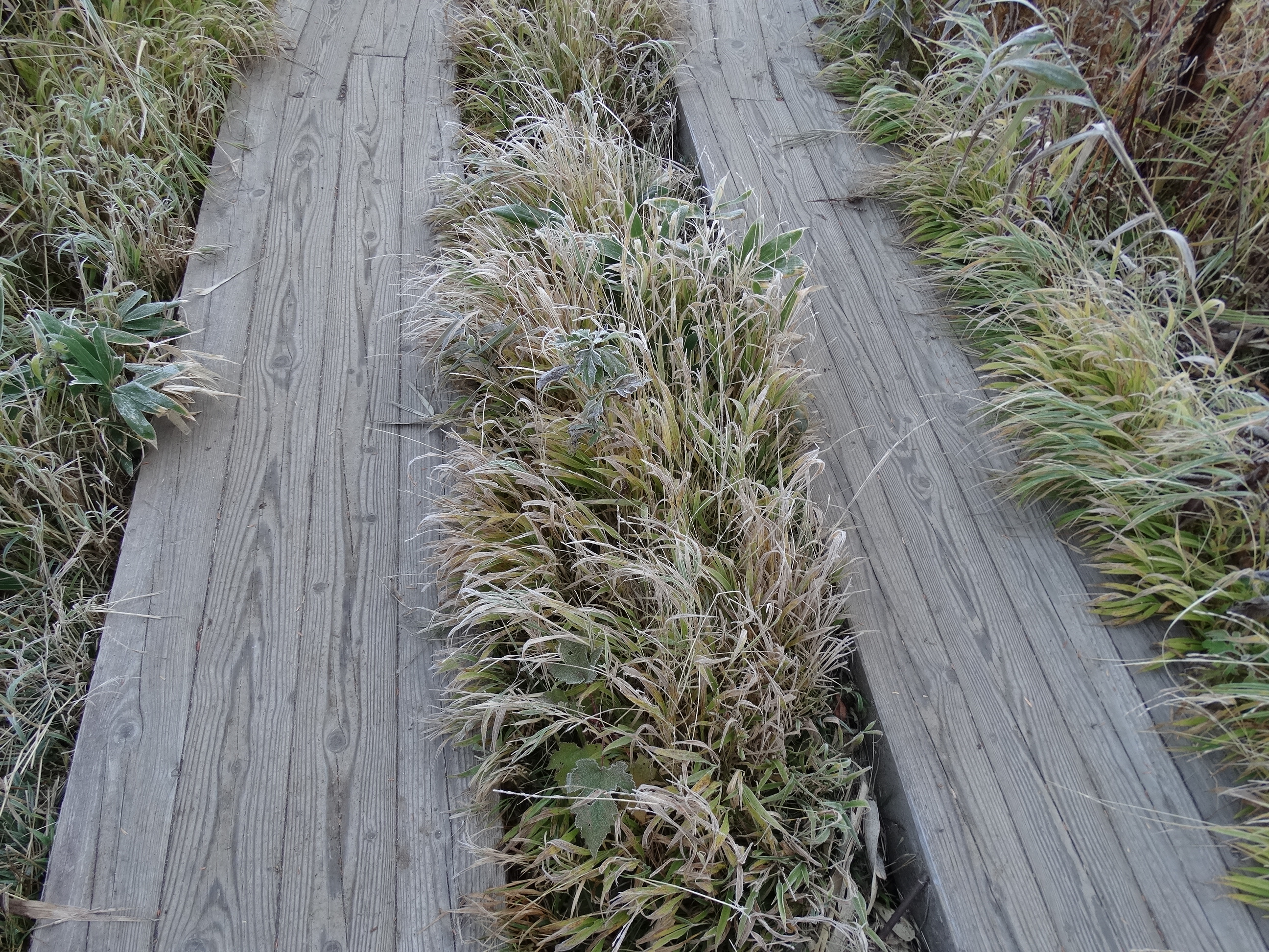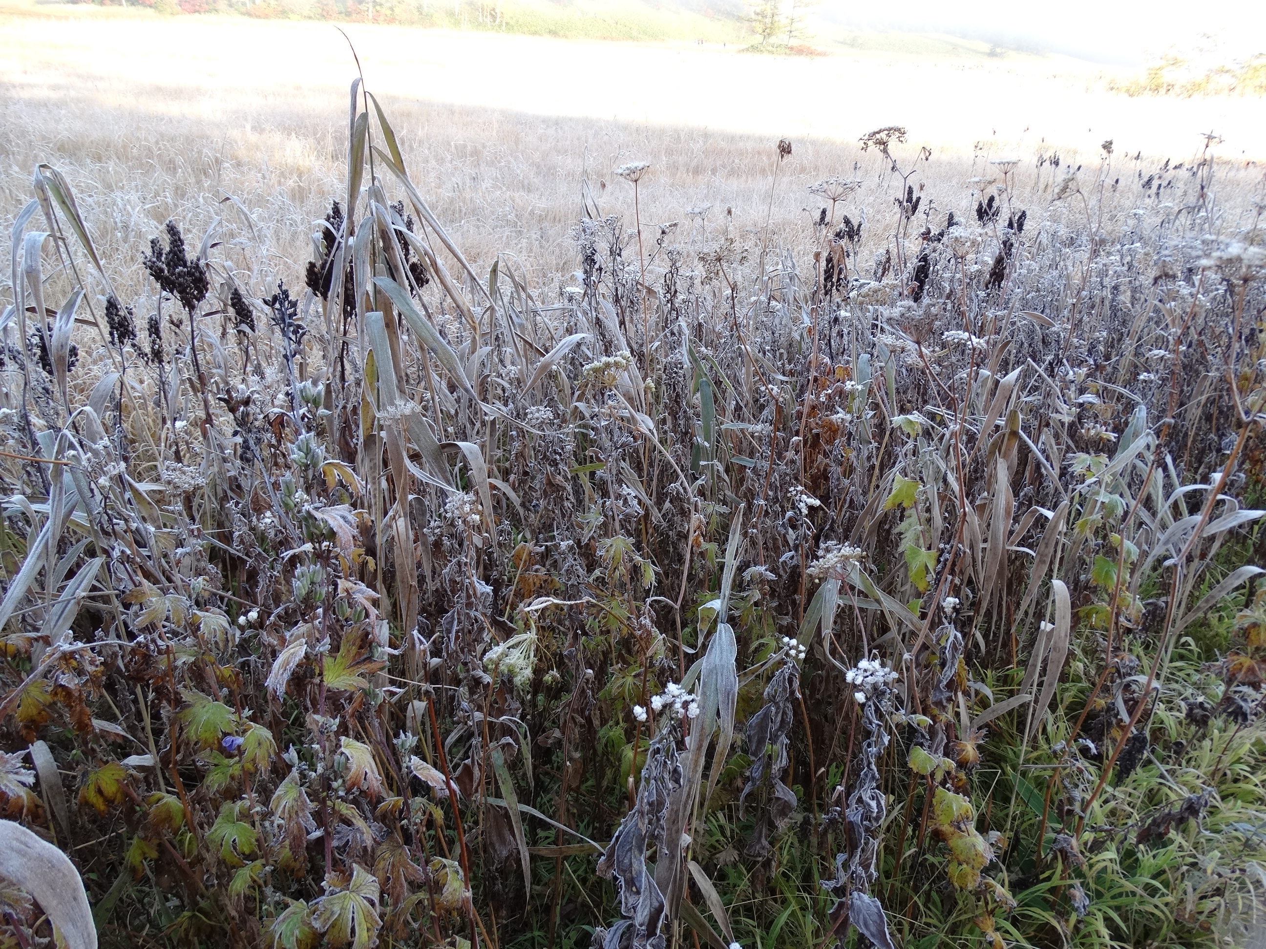 霜が湿原を覆っていました。もちろん寒さも身が引き締まるくらいになってきました。