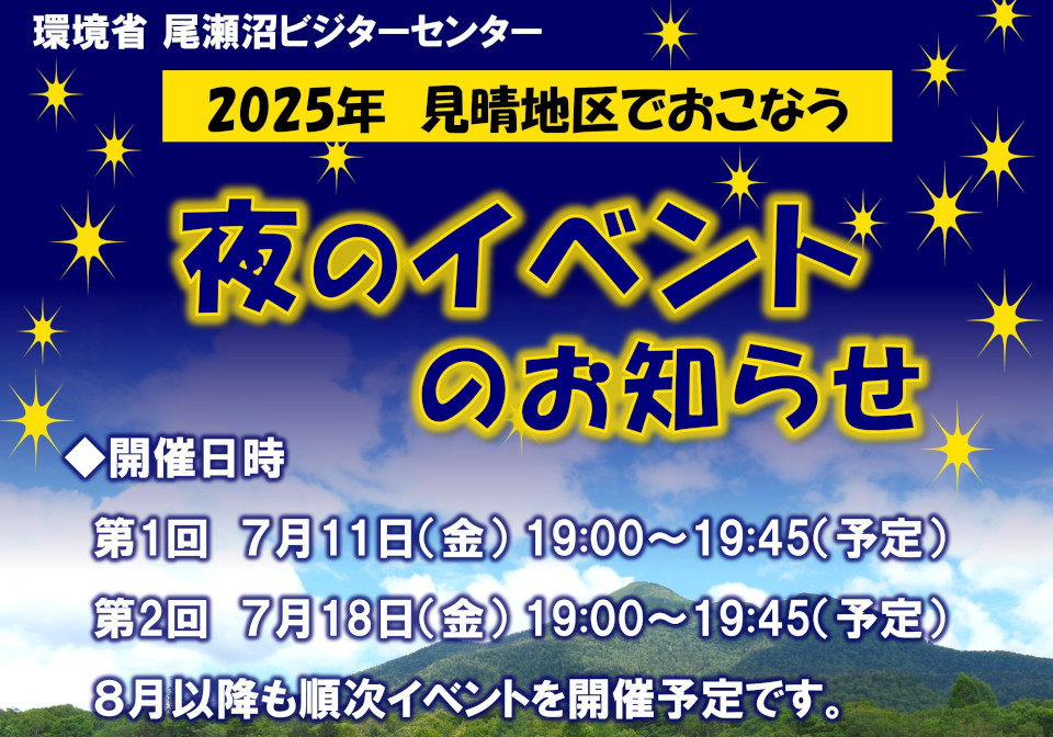 お知らせ 2025.12.12 尾瀬Instagram投稿キャンペーン(#尾瀬フォト2025)入選作品発表! 2025年5月13日~10月31日に実施した尾瀬Instagram投稿キャンペーン(#尾瀬フォト2025)では、多くの方々にご参加いただき、ありがとうございました! 応募作品の中から、最優秀作品1点、優秀作品4点、入選作 […] お知らせ 2025.12.12 尾瀬Instagram投稿キャンペーン(#尾瀬フォト2025)実施します!※募集終了しました 投稿募集! キャンペーン期間中に尾瀬国立公園内で撮影した写真を「#尾瀬フォト2025」をつけて投稿してください。とっておきの写真をお待ちしております!※必ず下記応募方法を確認の上、投稿をお願いします。 募集期間 5月13 […] お知らせ 2025.12.05 尾瀬保護財団設立30年記念事業について 尾瀬保護財団は、2025年に設立30周年を迎えることができました。これもひとえに、日頃よりご支援・ご協力を賜っている多くの関係者の皆さま、そして尾瀬を愛するすべての方々のお力添えによるものであり、心より感謝申し上げます […] お知らせ 2025.11.05 2025年シーズンオフ関連情報 尾瀬に至る道路が冬季閉鎖され、2025年の尾瀬シーズンは終了しました。また、来シーズンのお越しをお待ちしております。 ◎ 尾瀬周辺道路の冬期閉鎖予定 1.群馬県側 大清水:11/5(水)10時 ~ 4/17 […] お知らせ 2025.10.01 【10/26終了】御池~沼山峠間シャトルバス運行について 道路補修工事のため、御池~沼山峠間シャトルバスの今シーズンの運行日が下記のとおり変更となります。また、10月14日(火)より運行時間も変更となりますので、ご注意ください。 詳細は、会津乗合自動車株式会社HPをご確認 […] お知らせ, イベント 2025.10.01 【尾瀬沼ビジターセンターのイベント情報】(10月)(見晴地区) 見晴地区でおこなう「夜のイベント」についてのお知らせです。 10月はナイトハイクや星空観察会、スライドショーなどを予定しています。 ※こちらの<ポスター>をご覧ください。 ◆開催日:10月3日(金)、10月17日(金)◆ […] お知らせ 2025.09.19 【9/19更新】見晴キャンプ場付近でのツキノワグマの目撃について 見晴キャンプ場からお知らせです。 数日前にキャンプ場付近の樹でツキノワグマが複数回目撃されています。 そのため、現在見晴キャンプ場では一部エリアへの立ち入り規制を行っております。また危険と判断された際には、急遽キャンプ場 […] お知らせ 2025.09.18 【環境省】登山者の皆様へ(尾瀬国立公園内でのニホンジカ捕獲) ※実施期間を当初7月上旬までから10月中旬までに延長しました ニホンジカによる植生被害が深刻な状況にある尾瀬国立公園において、下記のとおりニホンジカの捕獲作業を実施しております。 安全には十分配慮して実施しますが、 […] お知らせ 2025.09.17 尾瀬植物研究見本園の通行止め解除について ツキノワグマの頻出により一部閉鎖していた研究見本園において、7日連続でクマの目撃がなかったことから、通行止めを全面解除しました。 これまでの研究見本園一部閉鎖に関するお知らせはこちら ただし、尾瀬はクマの生息地ですので、 […] お知らせ 2025.09.17 山ノ鼻キャンプ場の営業再開について ツキノワグマの出没により営業を休止していた「山ノ鼻キャンプ場」について、下記のとおり、営業が再開されましたので、お知らせします。 営業再開:9月13日(土) 詳しくは、キャンプ場を運営する東京パワーテクノロジー株式会社H […] < PREV12345NEXT >