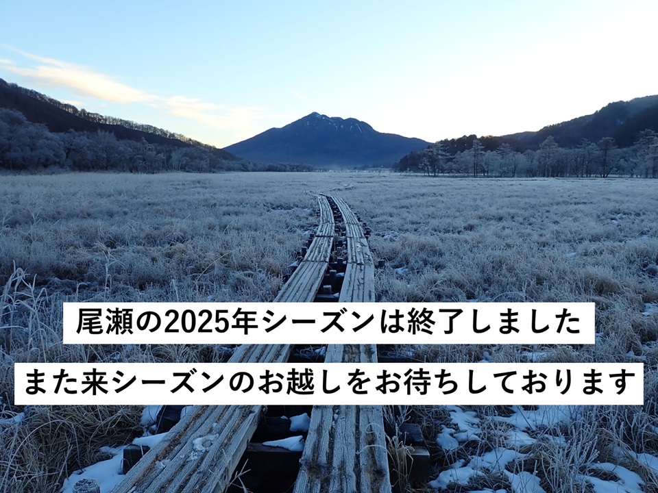 お知らせ 2025.11.05 2025年シーズンオフ関連情報 尾瀬に至る道路が冬季閉鎖され、2025年の尾瀬シーズンは終了しました。また、来シーズンのお越しをお待ちしております。 ◎ 尾瀬周辺道路の冬期閉鎖予定 1.群馬県側 大清水:11/5(水)10時 ~ 4/17 […] お知らせ 2025.11.04 尾瀬Instagram投稿キャンペーン(#尾瀬フォト2025)実施します!※募集終了しました 投稿募集! キャンペーン期間中に尾瀬国立公園内で撮影した写真を「#尾瀬フォト2025」をつけて投稿してください。とっておきの写真をお待ちしております!※必ず下記応募方法を確認の上、投稿をお願いします。 募集期間 5月13 […] < PREV1NEXT >